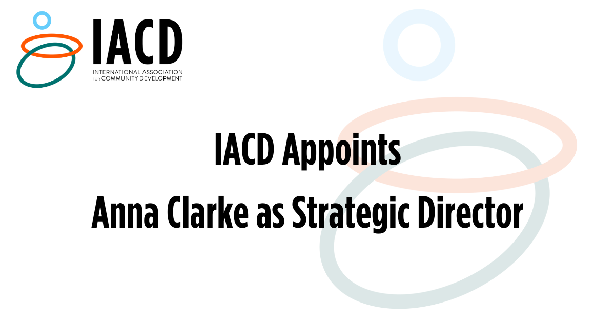 The International Association for Community Development (IACD) is delighted to announce the appointment of Anna Clarke as its new Strategic Director, following a rigorous and competitive recruitment process.