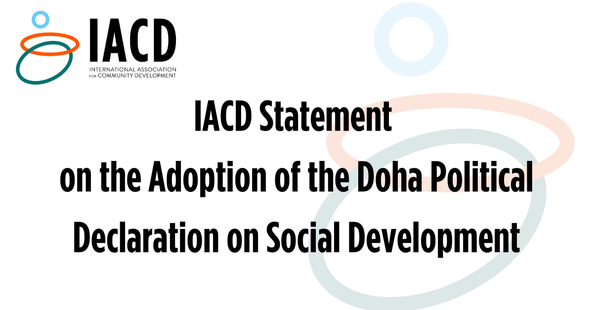 In conclusion, the Doha Declaration is a welcome renewal of commitment. However, it will only succeed if world leaders and Governments mobilise the political and financial will to embed genuine people-powered strategies into global and national policy. The IACD remains committed to engage further, advocating for Community Development as the key to unlocking the full potential of this Declaration and building a fairer, more inclusive world for everyone on the planet.